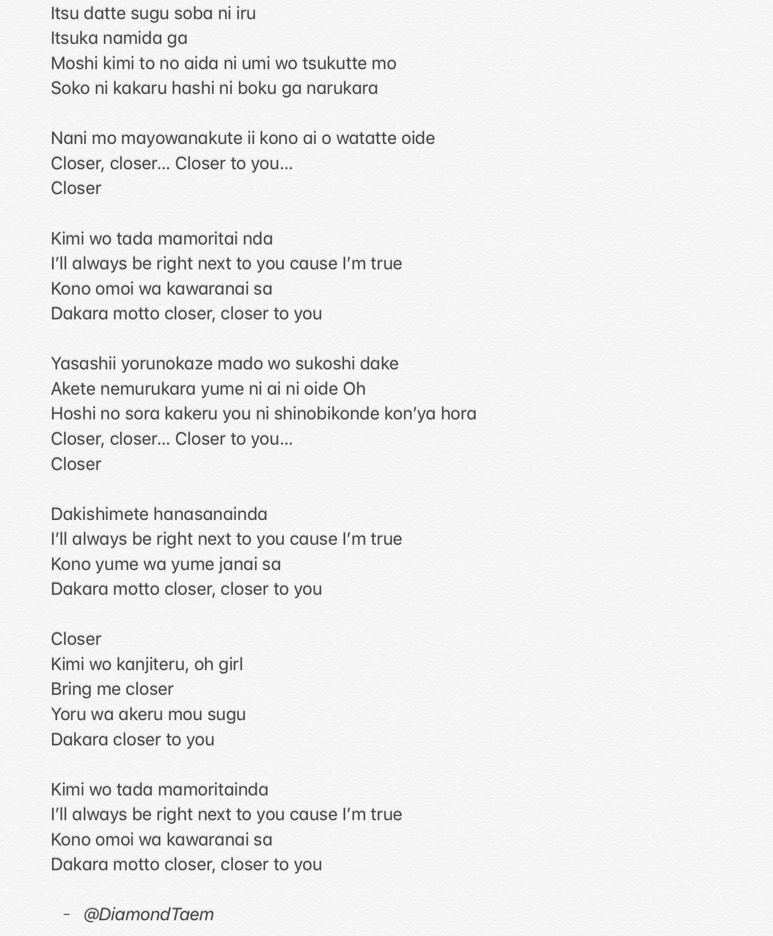 𝔻𝕚𝕒𝕞𝕠𝕟𝕕 𝕋𝕒𝕖𝕞 Miss U On Twitter Shinee Closer Rom Lyrics Translation Shinee 샤이니 Shinee Superstar Https T Co M3i6mzxxvr Twitter